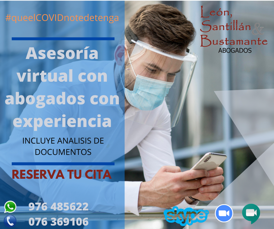 Ante la la pandemia mundial, el estudio ha determinado principal y preferentemente que la atención se realizará de manera virtual, para lo cual colocamos todas nuestras herramientas tecnológicas para la absolución de consultas, reuniones de trabajo e informes de los casos.